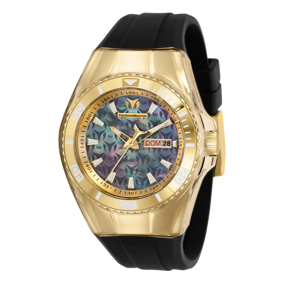 Este incrvel relgio TechnoMarine da coleo Monogram oferece um movimento exato, com uma incrvel caixa dourada. O mostrador exibe um mostrador preto em ostra protegido pelo nosso exc