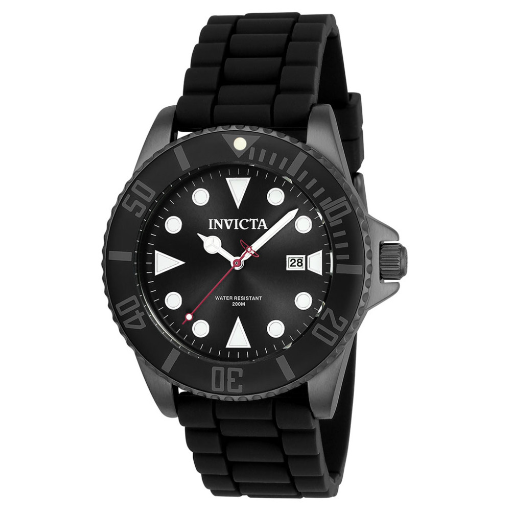 Este relgio Invicta Pro apresenta um movimento preciso e uma caixa de metal. Seu mostrador de metal preto protegido por um cristal mineral altamente resistente. A pulseira de silic