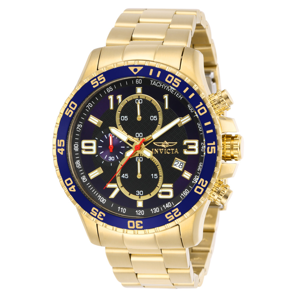Este um relgio Invicta da coleo Speciality com caixa dourada e movimento preciso. O mostrador decorado por um mostrador de metal e protegido por um resistente Cristal Mineral. A pu