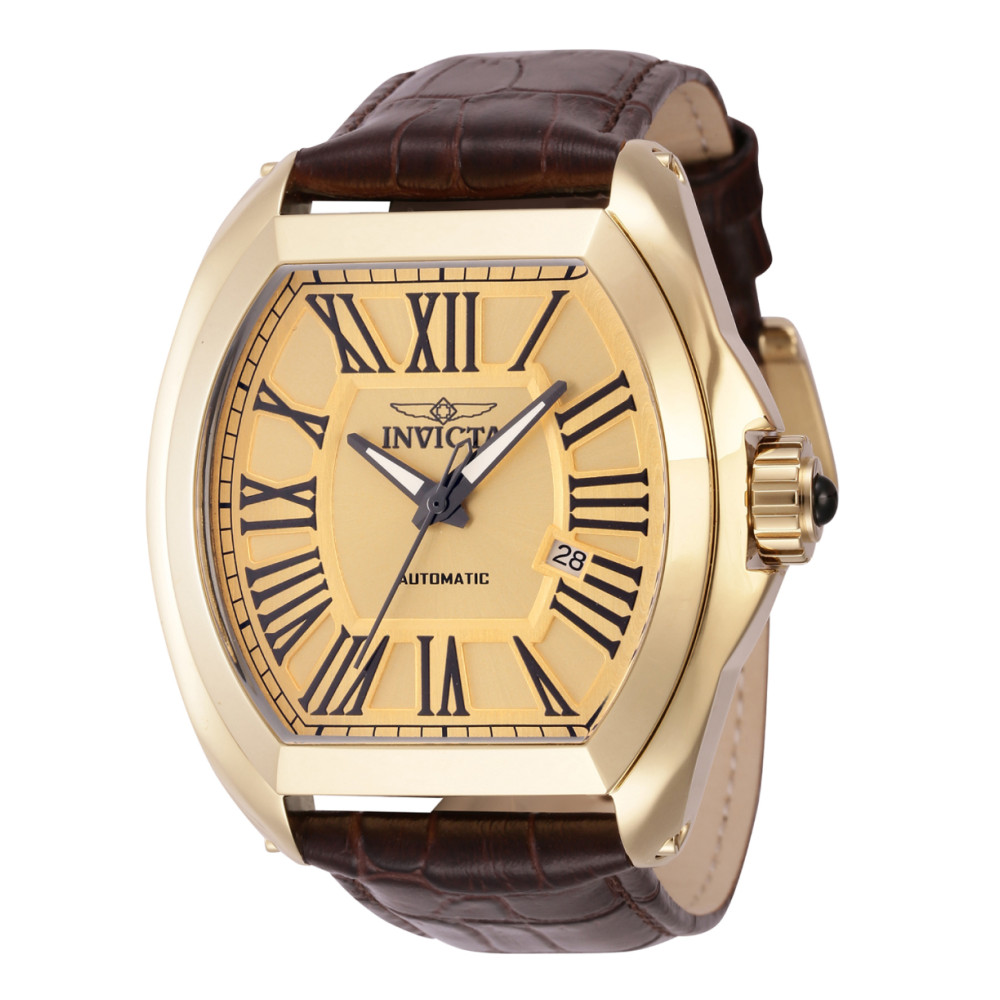Este incrvel relgio Invicta da coleo Pro oferece um movimento Automtico exato, com uma incrvel caixa dourada. O mostrador exibe um mostrador de metal dourado protegido pelo nosso e