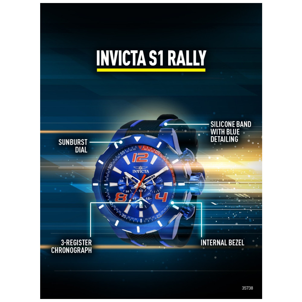 Relgio masculino S1 Rally 52 mm. Preto. Azul 35738, Invicta