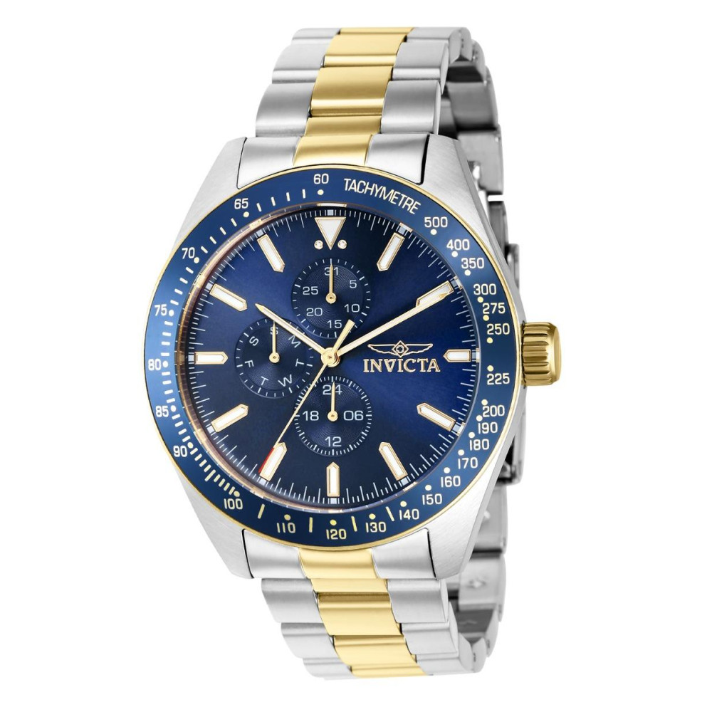 Relógio Aviador Masculino 45mm. Aço. Ouro 39076: Este atraente relógio Invicta da coleção Aviator é alimentado por um movimento preciso, com uma caixa de aço Seu mostrador é decorado por um mostrador de metal azul e protegido por um resistente Flame Fusion Crystal Uma pulseira de aço, ouro e aço inoxidável completa este relógio que pode resistir à água por até 100 m O Invicta Aviator foi liberado para decolar Pronto para rodar a todo vapor, carregando designs que homenageiam a história gráfica aeronáutica, cada relógio é uma máquina delicada esperando seu piloto no comando Seja uma viagem curta ou uma jornada para a vida toda, o Invicta Aviator é seu primeiro instrumento em terra ou enquanto navega pelos céus Desde a fundação da Invicta há mais de um século até os dias atuais, a inovação e a excelência têm estado no centro de cada era e coleção ao longo da história da marca Aqui nas lojas Invicta, você encontrará a maior seleção de relógios Invicta em qualquer lugar online, além de atendimento ao cliente superior, garantia de 3 anos e sempre o melhor valor Em alguns casos, as cores nas imagens podem ser ligeiramente diferentes do produto real Especificações do produto Cor do mostrador Azul Material do mostrador Metal Tamanho da caixa 45 Tom da caixa Aço Material da caixa Aço Função do bisel Estacionário Tipo de coroa Push Quantidade de pedras Stone Quantity Cor luminosa Branco Material Luminoso Tritnite Tipo de movimento Fabricado na Suíça Não Componentes do movimento Japão Fornecedor de movimento TMI Calibre de movimento VH67 Material da pulseira Aço inoxidável Comprimento da banda mm 210 Tamanho da banda mm 22 Tipo de fivela Dobrar sobre segurança Código da família do produto PF17006 custo especial Y Tom da banda Aço, Tom dourado Tipo de Cristal Fusão de Chamas Função cronógrafo 24 horas Função de calendário Data, Dia Categoria Relógios Gênero Masculino Mostrador Esqueleto Não Cronógrafo Não