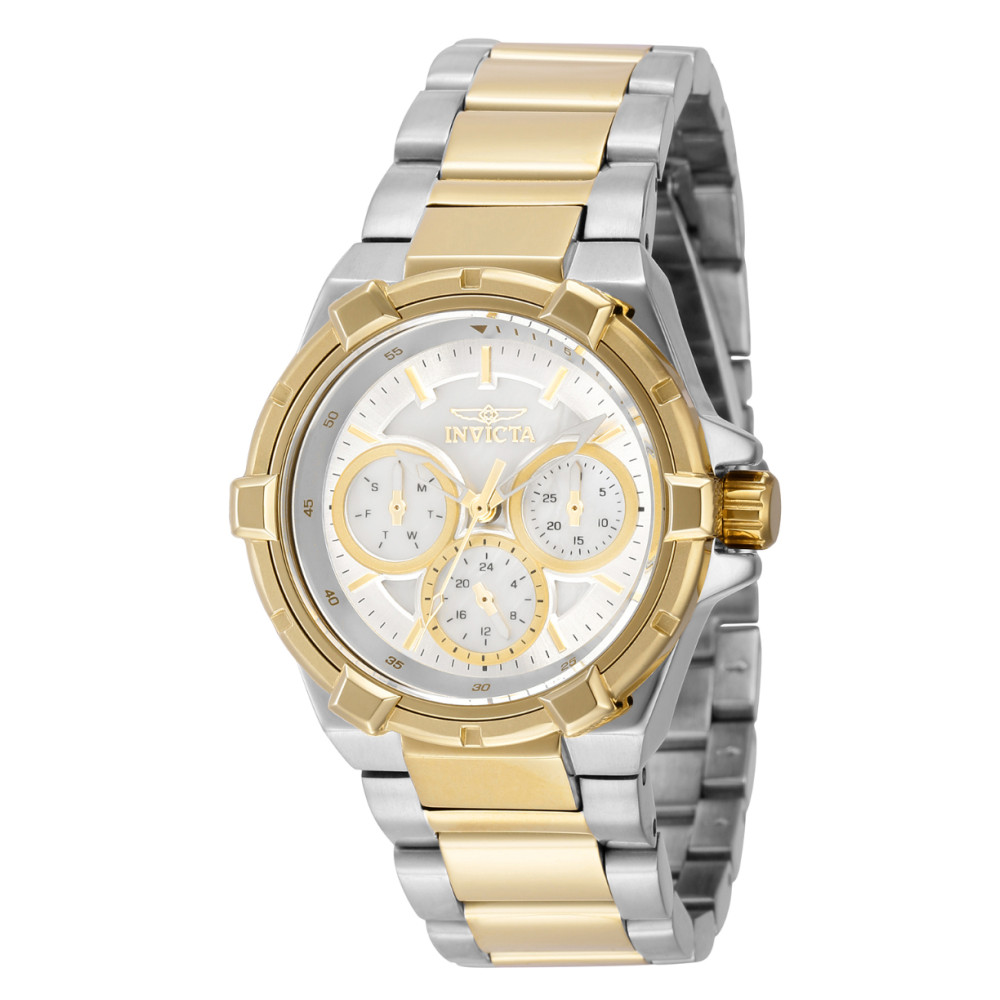 Relógio Feminino Aviator com Mostrador Madrepérola, Invicta 37314, Prata e Dourado