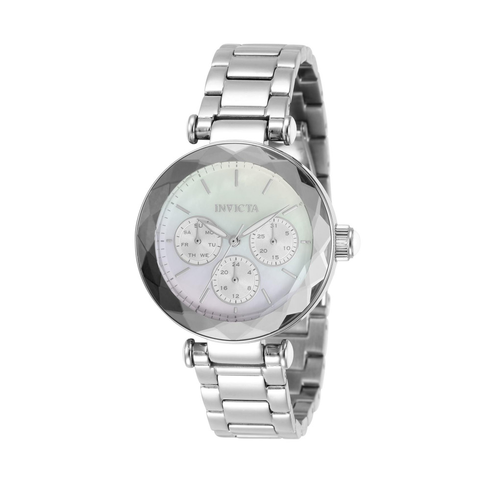 Este atraente relógio Invicta da coleção Angel é alimentado por um movimento preciso de quartzo, com uma caixa de aço. Seu rosto é decorado com um mostrador branco, metal e ostra e" width="300" height="300" class="attachment-woocommerce_thumbnail" />