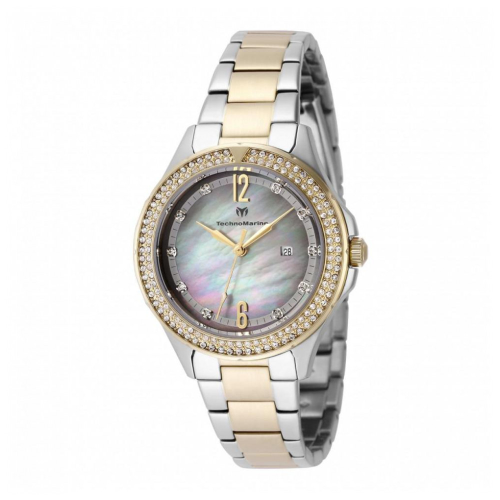 Relógio Feminino TechnoMarine Luna Tides com Mostrador de Madrepérola 33mm, Dourado, Aço TM826011