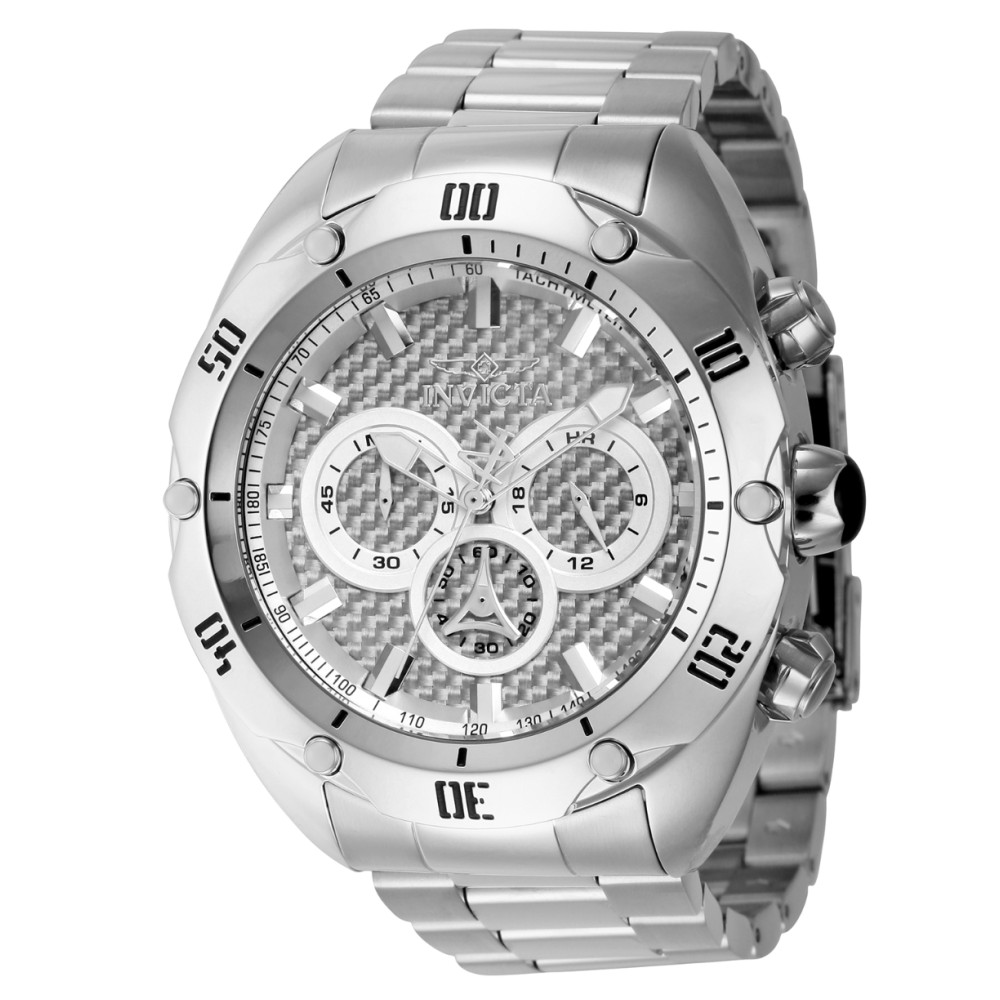Este relógio Invicta tem uma caixa de aço de 50 milímetros, protegida por cristal Flame Fusion.