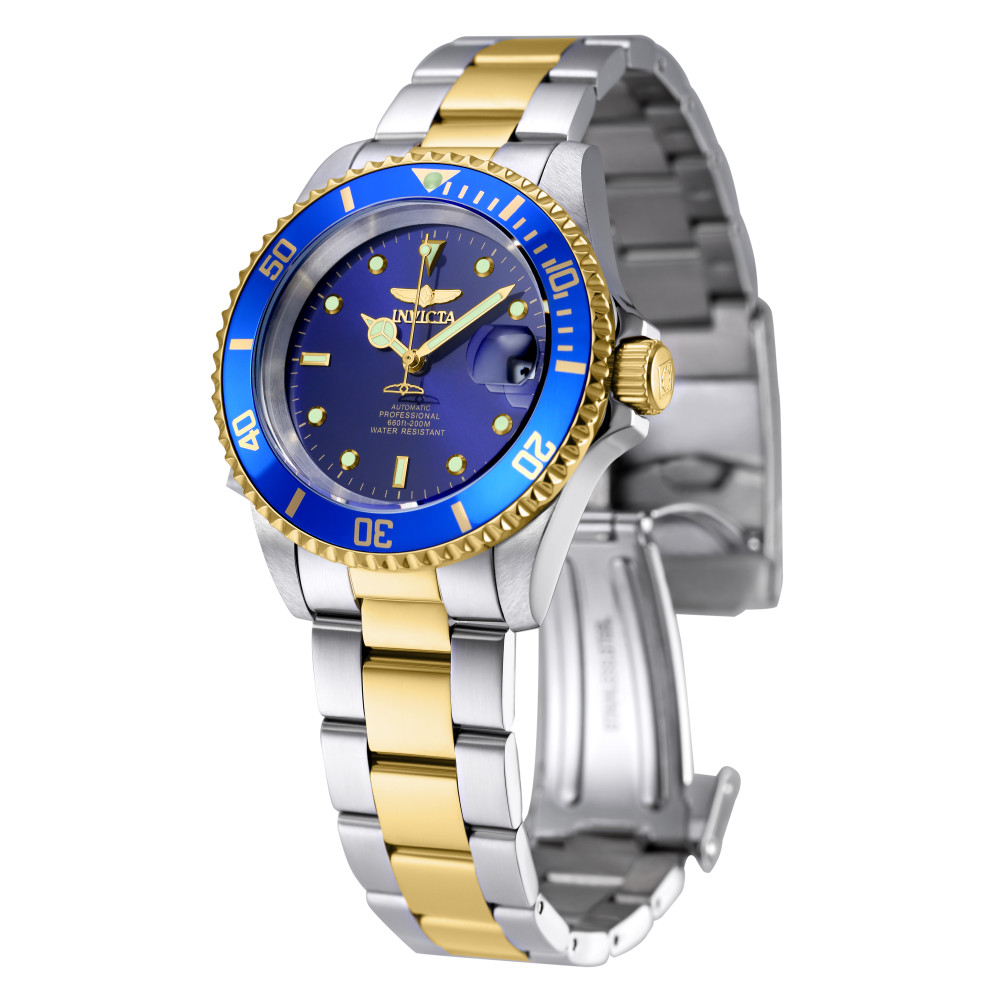 Relógio Masculino Automático Pro Diver, Invicta 8928OB, Prata, Dourado e Azul: Este impressionante relógio Invicta Pro Diver apresenta um movimento automático preciso, bem como uma caixa de aço dourada.