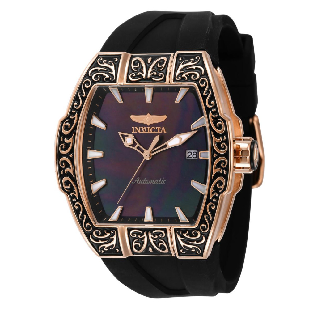 Este impressionante relógio Invicta S1 Rally apresenta um movimento automático preciso e uma caixa em ouro rosa Seu mostrador preto em madrepérola é envolto por um cristal Flame Fu