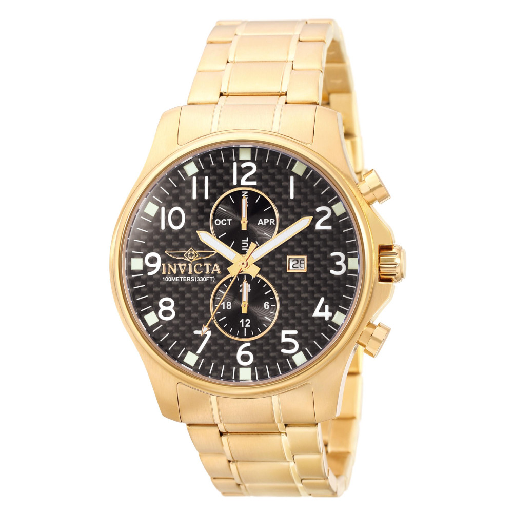 Este atraente relógio Invicta da coleção Specialty é alimentado por um movimento preciso, com uma caixa dourada Seu mostrador é decorado com um mostrador preto de fibra de carbono&