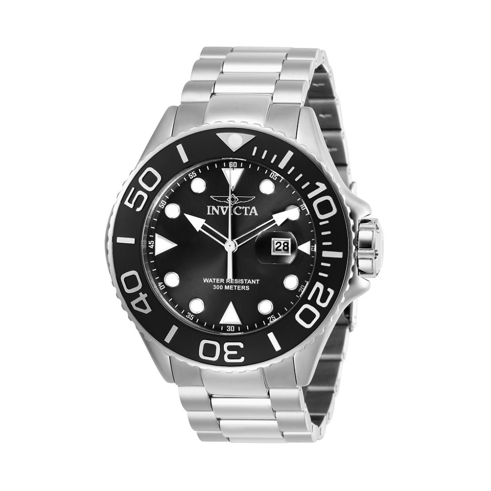 Este um relgio Invicta Pro com um movimento preciso e uma caixa de ao preta. Seu mostrador de metal preto e protegido por um Cristal Mineral de alta resistncia. A pulseira de ao in