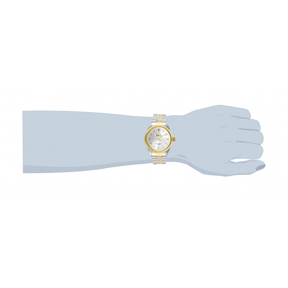 Este belo relógio da coleção Invicta Specialty contém um movimento preciso de quartzo, além de um estojo dourado e de aço. Seu mostrador exibe uma combinação prateada de metal prot