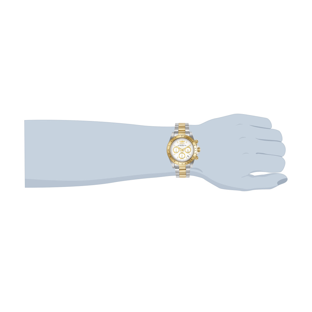 Este atraente relgio Invicta da coleo Speedway movido por um movimento e uma caixa de ao em ouro macio. Seu mostrador decorado por um mostrador de metal branco e protegido por um r