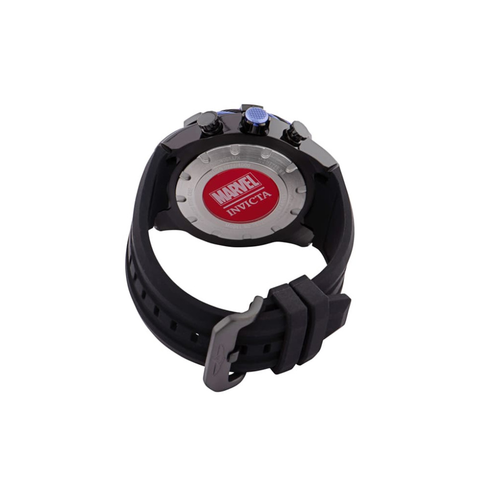 Relógio Masculino Marvel Pantera Negra, Invicta 35121, Preto e Roxo: Este relógio Invicta da coleção Marvel possui um movimento Quartz e possui uma caixa robusta de metal.