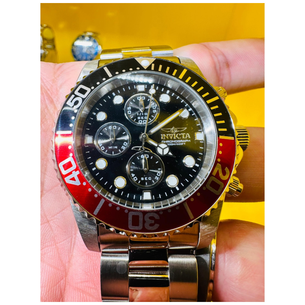 Este incrível relógio Invicta da coleção Pro Diver oferece um movimento de quartzo exato, com uma incrível caixa de aço. O mostrador exibe um mostrador de metal preto protegido por" width="300" height="300" class="attachment-woocommerce_thumbnail" />