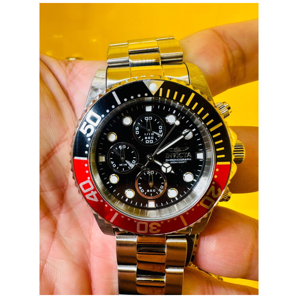 Este incrível relógio Invicta da coleção Pro Diver oferece um movimento de quartzo exato, com uma incrível caixa de aço. O mostrador exibe um mostrador de metal preto protegido por