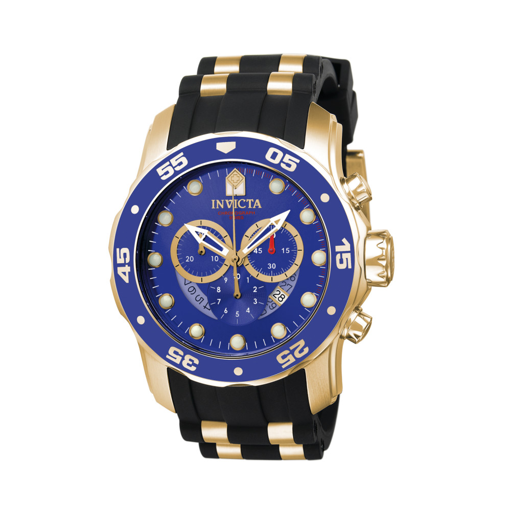 Relógio Masculino Pro Diver SCUBA, Invicta 6983, Preto, Dourado e Azul: Este incrível relógio Invicta da coleção Pro Diver oferece um movimento de quartzo exato, com uma caixa de ouro incrível.