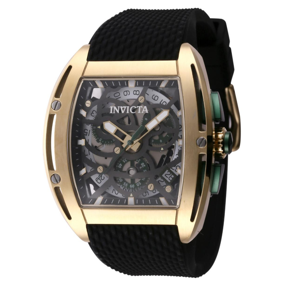 Este atraente relógio Invicta da coleção S1 Rally é alimentado por um movimento preciso, com uma caixa dourada Seu mostrador é decorado por um mostrador de metal cinza e preto e pr