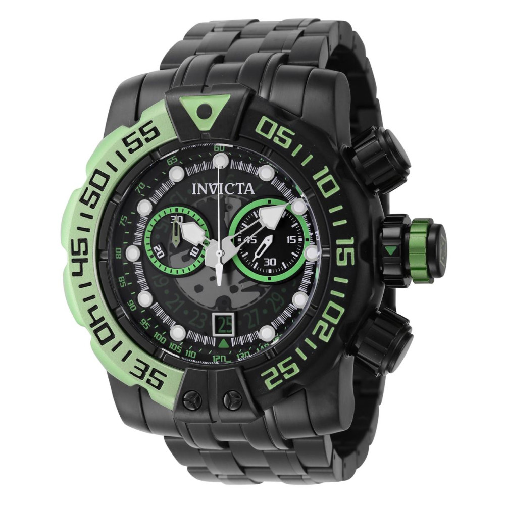 Relógio masculino Sea Hunter Swiss Ronda Z50 Calibre 57mm. Preto 44854: Este lindo relógio Invicta Sea Hunter contém um movimento preciso além de uma caixa preta Seu mostrador exibe um mostrador de plástico e metal protegido por um cristal Flame Fusion altamente resistente Este relógio é completado por uma pulseira preta de aço inoxidável e oferece resistência à água de até 100 m Uma obra prima em cronometragem se juntou às fileiras da coleção Pro, o Invicta Sea Hunter Com tamanho proeminente e pronto para enfrentar as maiores profundidades, o Invicta Sea Hunter chega com um propósito preparado para lidar com qualquer nível de intensidade Não é para os fracos de coração, o volume e a capacidade ferozes do Sea Hunter ultrapassam barreiras, oferecendo um padrão incomparável Desde sua fundação em 1837 até os dias atuais, a excelência inovadora tem sido o cerne de cada coleção ao longo da história da Invicta Aqui na Invicta Stores oferecemos a maior seleção de relógios Invicta em qualquer lugar online Temos orgulho do nosso excelente atendimento ao cliente, da nossa garantia de 3 anos e do nosso compromisso em oferecer o melhor valor pelos menores preços Em alguns casos, as cores nas imagens podem ser ligeiramente diferentes do produto real Especificações do produto Cor do mostrador Transparente, Preto Material do mostrador Plástico, Metal Tamanho da caixa 57 Tom da caixa Preto Material da caixa Aço Função do bisel Estacionário Tipo de coroa Push Cor luminosa Branco Material Luminoso Tritnite Tipo de movimento Fabricado na Suíça Não Componentes do movimento Suíço Fornecedor de movimento Ronda Calibre de movimento Z50 Material da pulseira Aço inoxidável Comprimento da banda mm 230 Tamanho da banda mm 30 Tipo de fivela Dobrar sobre segurança Banda intercambiável Não Código da família do produto PF19877 Tom da banda Preto Tipo de Cristal Fusão de Chamas Função cronógrafo 30 minutos Função de calendário Data Categoria Relógios Gênero Masculino Mostrador Esqueleto Não Cronógrafo Sim