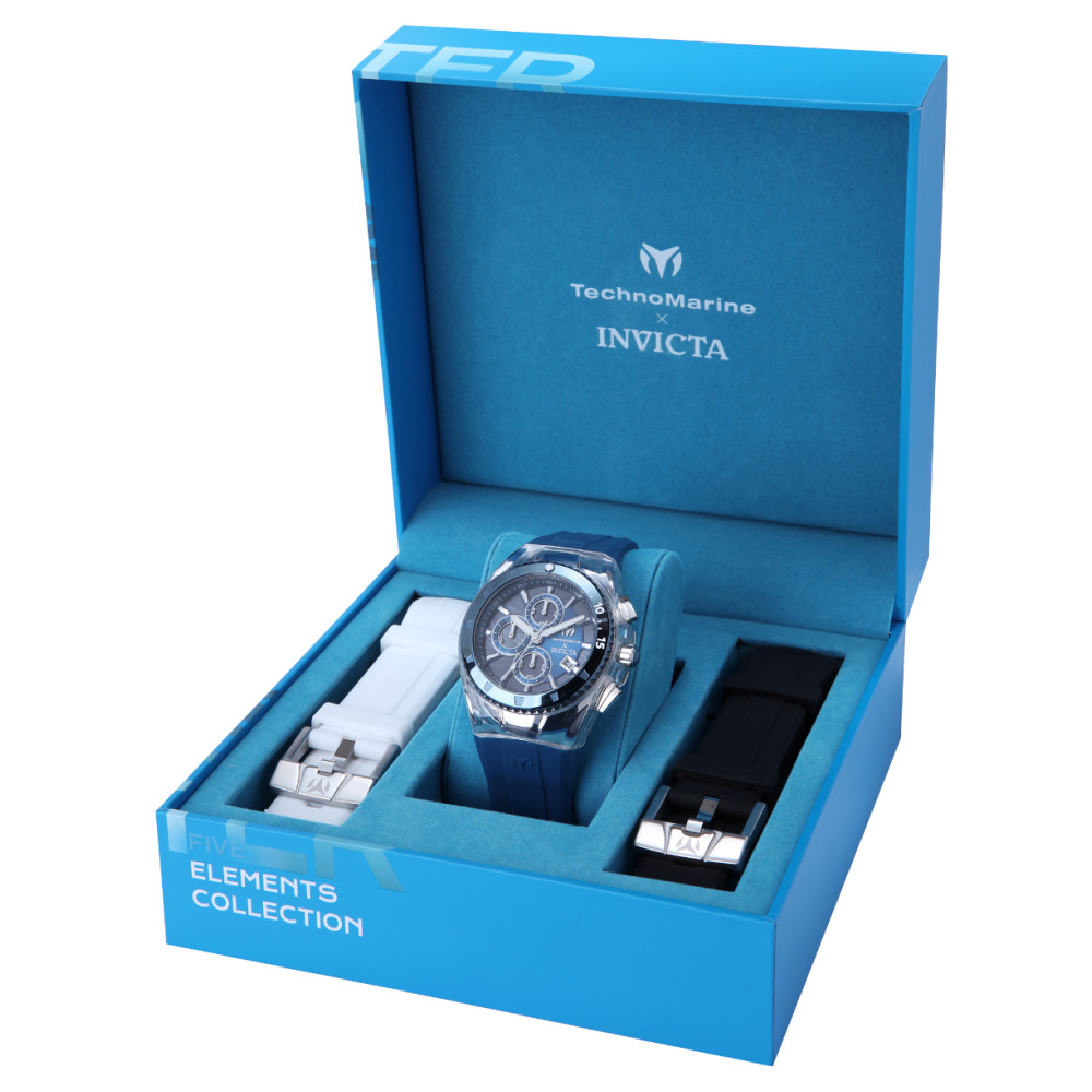 Relógio Masculino TechnoMarine X Invicta Five Elements WATER com 3 Alças Intercambiáveis 44, Azul TM 122003