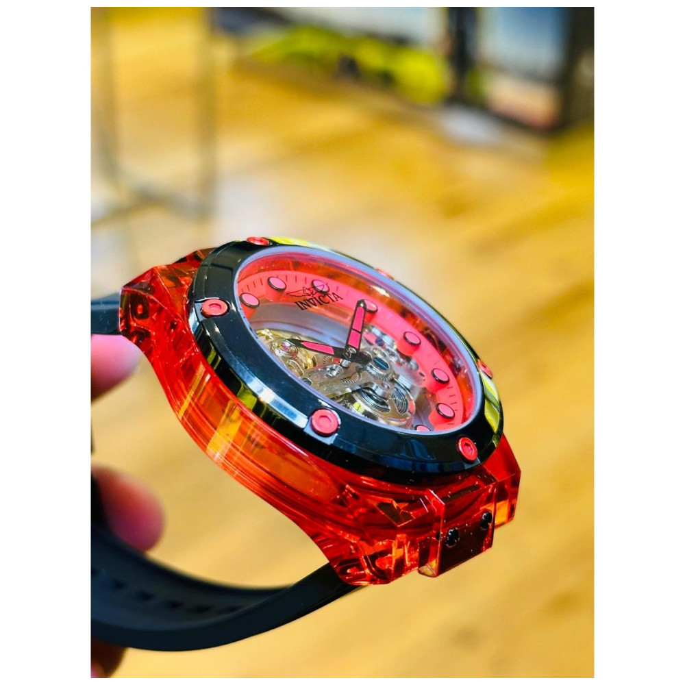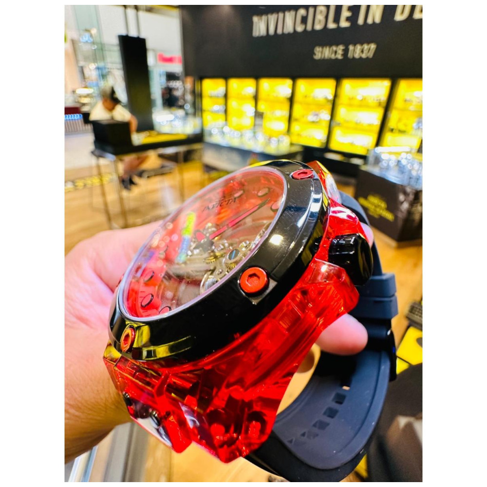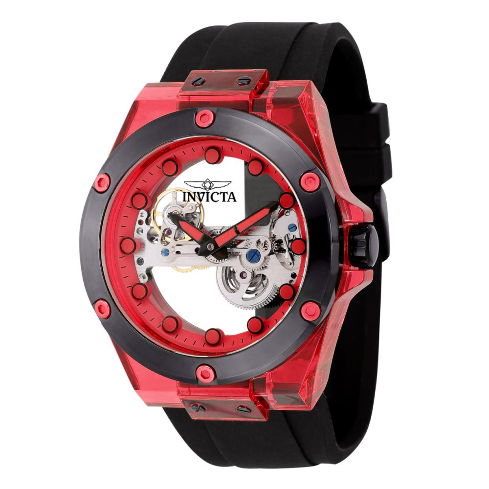 Este atraente relógio Invicta da coleção Speedway é alimentado por um movimento mecânico preciso, com uma caixa vermelha Seu mostrador é decorado com um mostrador vermelho de aço i