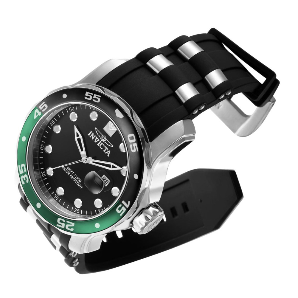 Este atraente relógio Invicta da coleção Pro é alimentado por um movimento preciso, com uma caixa prateada Seu mostrador é decorado por um mostrador preto de metal e protegido por&" width="300" height="300" class="attachment-woocommerce_thumbnail" />
