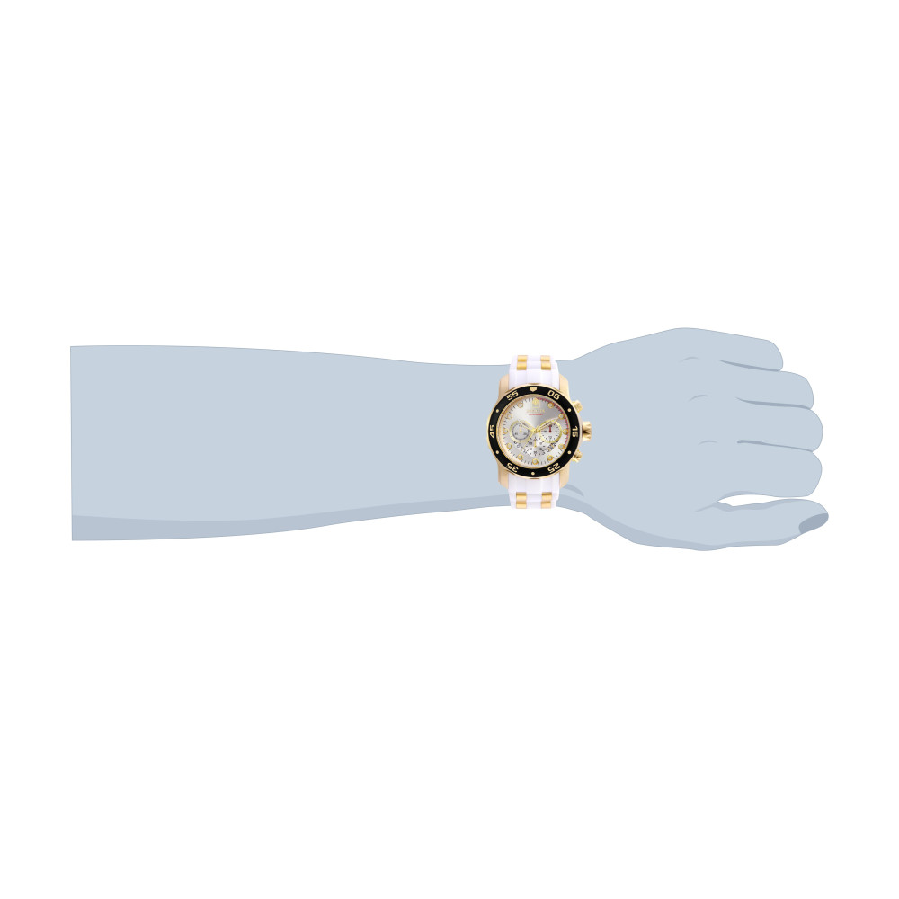 Este incrível relógio Invicta da coleção Pro oferece um movimento exato, com uma incrível caixa dourada O mostrador exibe um mostrador prateado e metálico protegido pelo nosso excl