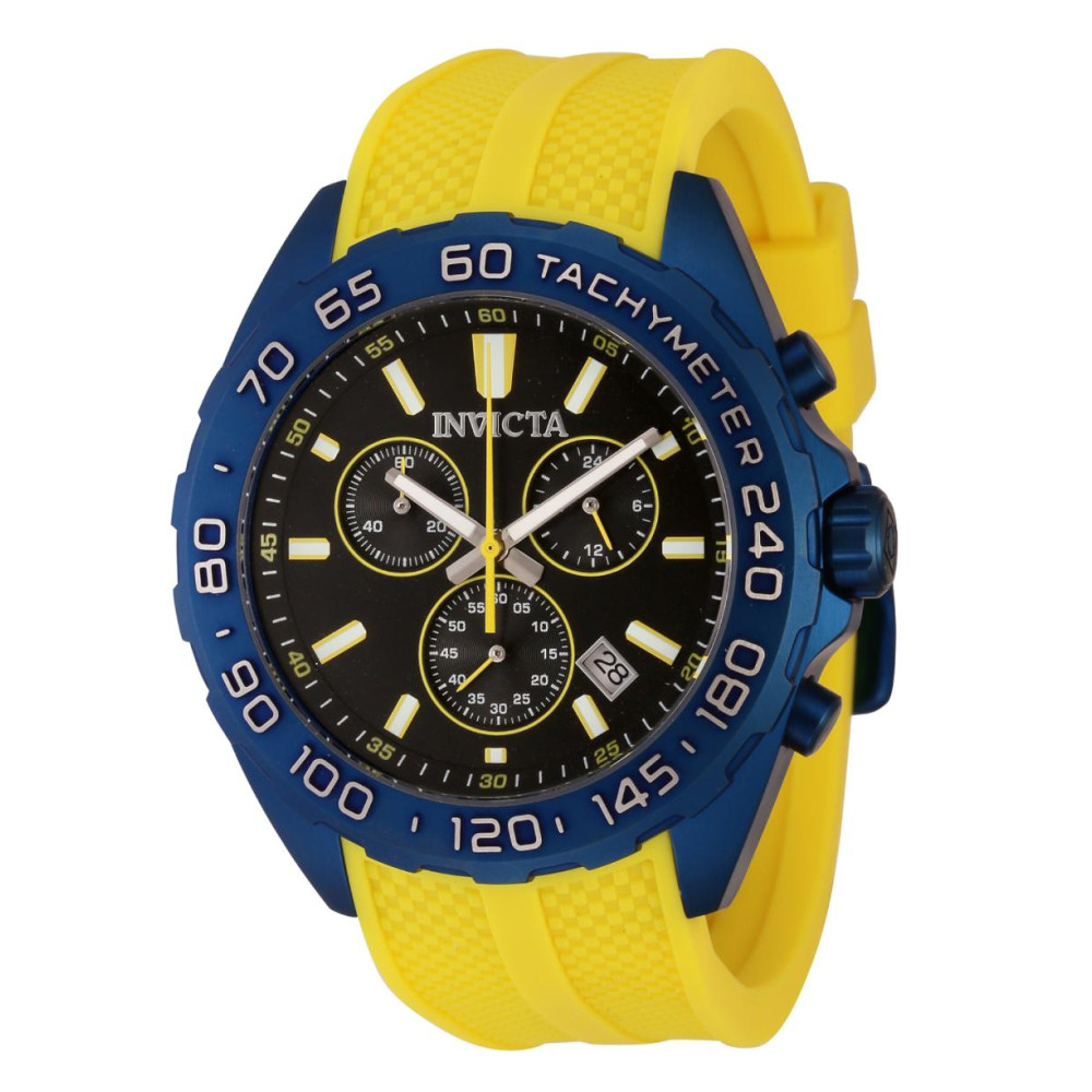Relógio Speedway Eclipse Masculino 47mm. Amarelo 44881: Este incrível relógio Invicta da coleção Speedway oferece um movimento exato, com uma incrível caixa de aço azul O mostrador exibe um mostrador preto de metal protegido pelo nosso exclusivo Flame Fusion Crystal O design é completado por uma faixa amarela de silicone Este relógio pode resistir à água por até 100 m Transmitindo o tempo com a máxima sofisticação, mas mantendo em mente as necessidades do esportista ativo, a coleção Invicta Speedway se adaptará facilmente a qualquer jornada Um trunfo para qualquer atividade, permita que o Speedway se integre à sua vida esportiva e profissional Desde a fundação da Invicta há mais de um século até os dias atuais, a inovação e a excelência têm estado no centro de cada era e coleção ao longo da história da marca Aqui nas lojas Invicta, você encontrará a maior seleção de relógios Invicta em qualquer lugar online, além de atendimento ao cliente superior, garantia de 3 anos e sempre o melhor valor Em alguns casos, as cores nas imagens podem ser ligeiramente diferentes do produto real Especificações do produto Cor do mostrador Preto Material do mostrador Metal Tamanho da caixa 47 Tom da caixa Aço, Azul Material da caixa Aço Função do bisel Estacionário Tipo de coroa Push Cor luminosa Branco Material Luminoso Tritnite Tipo de movimento Fabricado na Suíça Não Componentes do movimento Japão Fornecedor de movimento TMI Calibre de movimento VK68A Material da pulseira Silicone Comprimento da banda mm 210 Tamanho da banda mm 24 Tipo de fivela Fivela Banda intercambiável Não Código da família do produto PF19896 Tom da banda Amarelo Tipo de Cristal Fusão de Chamas Função cronógrafo 60 minutos Função de calendário Data Categoria Relógios Gênero Masculino Mostrador Esqueleto Não Cronógrafo Sim