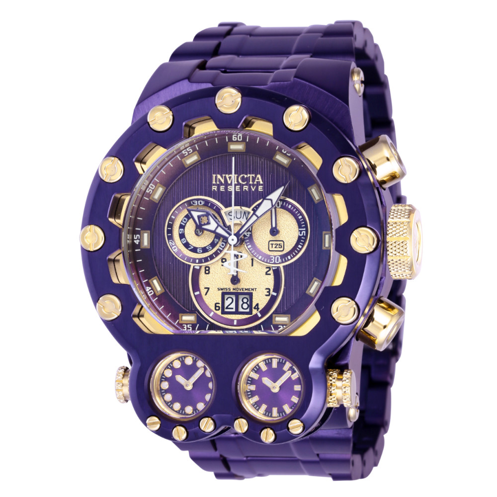 Reserve Bolt Zeus Magnum Swiss Ronda 5050.C Calibre Relgio Masculino 52mm. Roxo 39065, Invicta: Este incrvel relgio Invicta da coleo Reserve oferece um movimento exato, com uma incrvel caixa dourada e roxa.