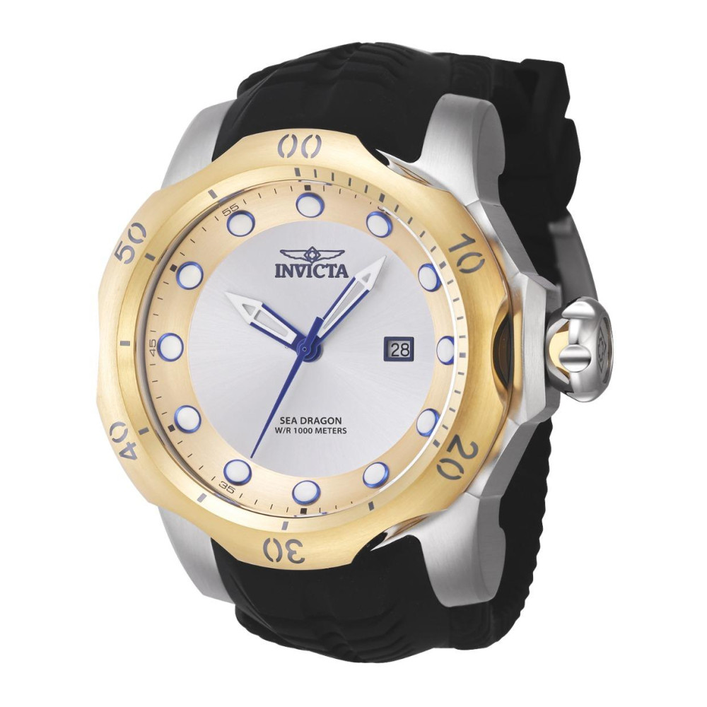 Este impressionante relógio Invicta Venom apresenta um movimento preciso e uma caixa de aço e ouro Seu mostrador de metal é envolto por um cristal mineral altamente protetor Este r